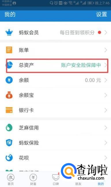 由于支付宝进行了多次升级,现在的蚂蚁财富让很多人都找不到了,我们先进入支付宝,然后我们点击总资产;