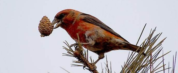 交嘴雀不象一般小鸟那样爱吃昆虫,而是以松子仁充当食物。松子仁又香又甜,是营养丰富的食品;但它被坚厚的果皮包着,取出这种种子却不是轻而易举的事。而交嘴雀的喙交叉象剪刀,左右互合又好象一把钳子,加上它那舌部肌肉特别发达,所以能顺利地取出种子,压破种皮,捣碎松仁,显得特别省力。难怪有人把交嘴雀称作“北方的鹦鹉”了。