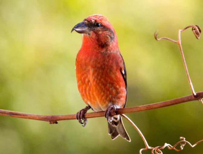 在我国东北区的针叶林里,常年居住着一种外貌很象麻雀、但羽毛却有点红褐色的小鸟。这种鸟的嘴型很特别,不象一般鸟那样两片喙上下并合,而是左右相互交叉着的。因此,我们称呼它“交嘴雀”。