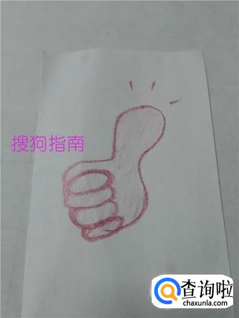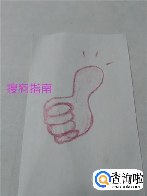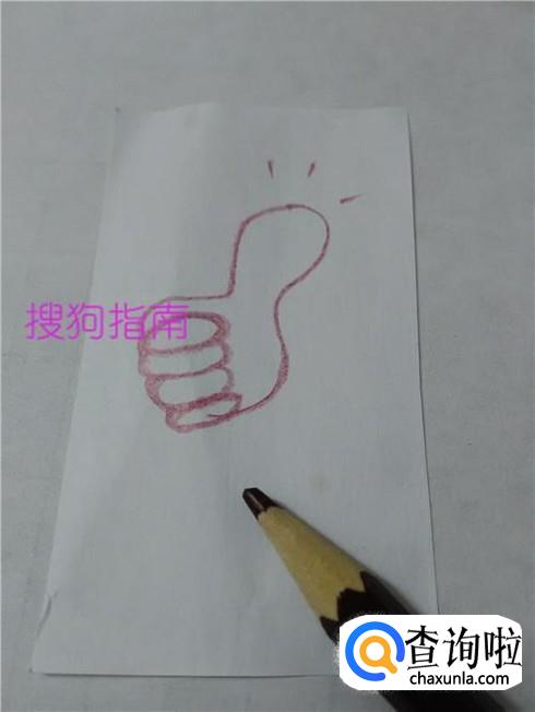 在大拇指上面画三条短线,表示称赞。