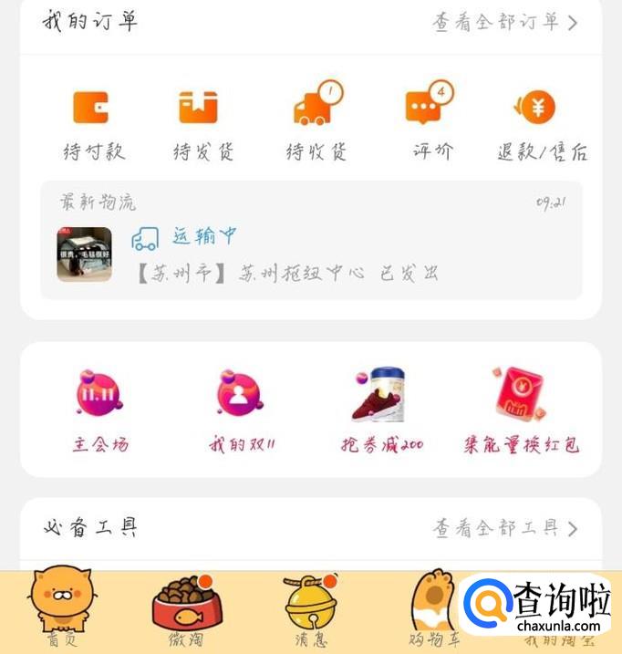 如果在淘宝上充值话费未到账,我们就打开淘宝,在主页面我们可以看到“我的”选项。