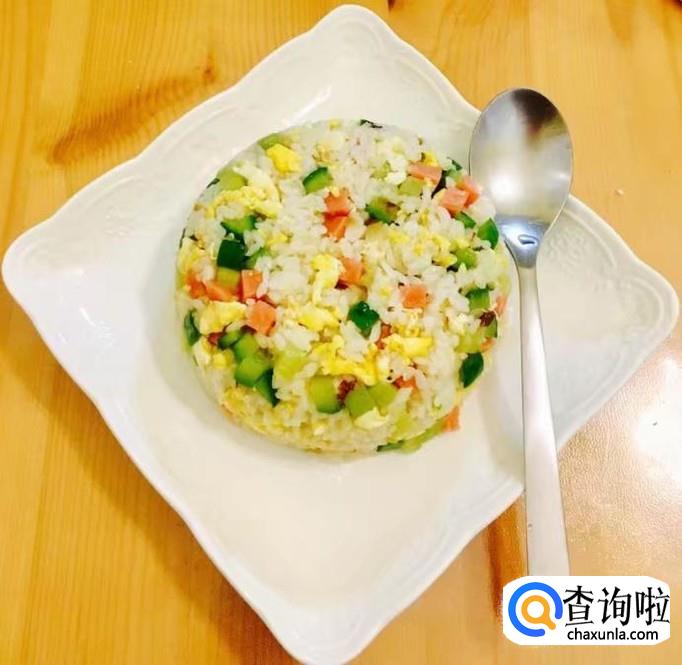 凉米饭,鸡蛋,黄瓜,火腿肠,葱,花生油,盐等等