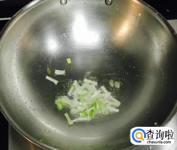 炒完黄瓜后把锅洗净烧热后加入适量的花生油放入葱花爆香,倒入凉米饭加入适量的盐中小火翻炒均匀。