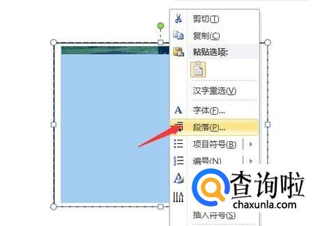 此时我们可以ctrl+a,选中所有的文本框中的图片文字,然后右击,选择段落。