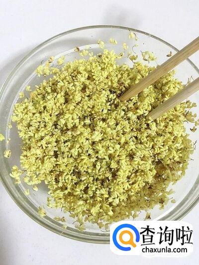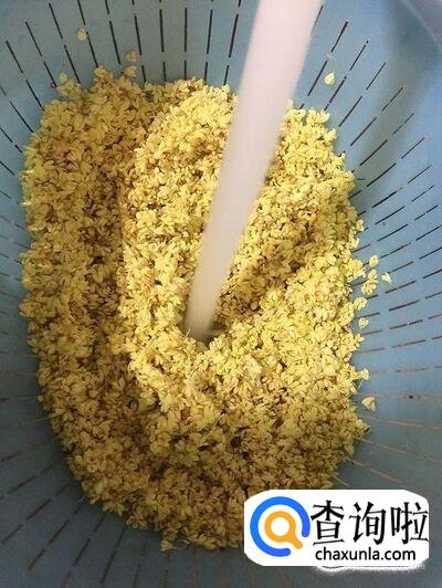 挑选颜色鲜艳的桂花,小心翼翼地摘下,尽量不要把花弄残。记住只要花,不要花梗。