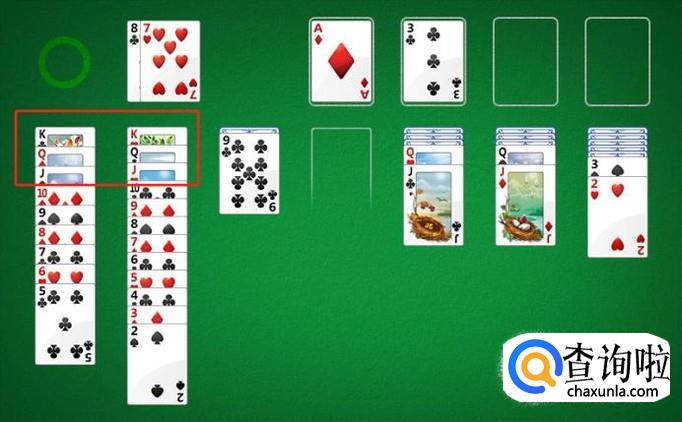 简单一点来说,大家需要将下方的几叠纸牌和左上角的一叠纸牌,全都移动到右上角的框框里。