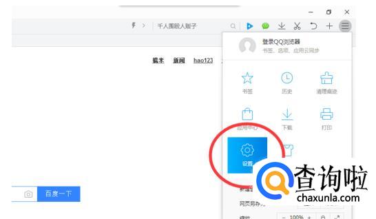 在弹出的子菜单里点击"设置“。