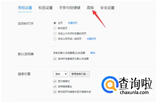 进入设置页面,点击第一行左侧的”高级“选项。