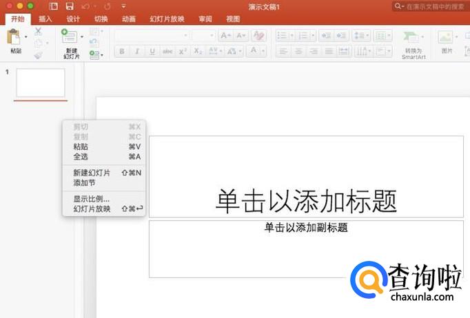 进入文稿编辑界面之后,我们就能够开始制作PPT了,在左侧幻灯片列表中右键点击可创建新的幻灯片。