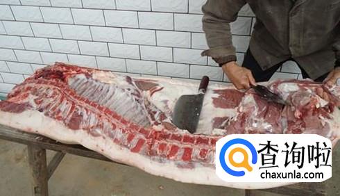 先把猪肉切成大小差不多大的块,用刀的尖部在每块猪肉的顶头切一条口子,再洗干净备用。