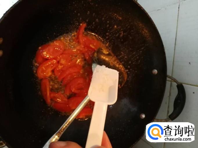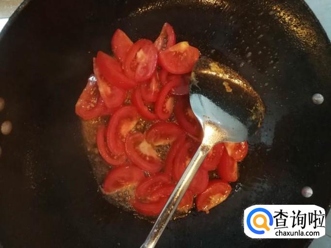然后我们重新往锅里倒油,油温上来后将切好的西红柿倒入进行翻炒。