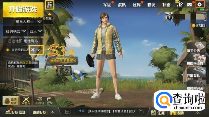 还有可能是因为处理器或者内存不够,打开刺激战场进入大厅主页面,点击右上角的齿轮,然后选择"画面设置"。