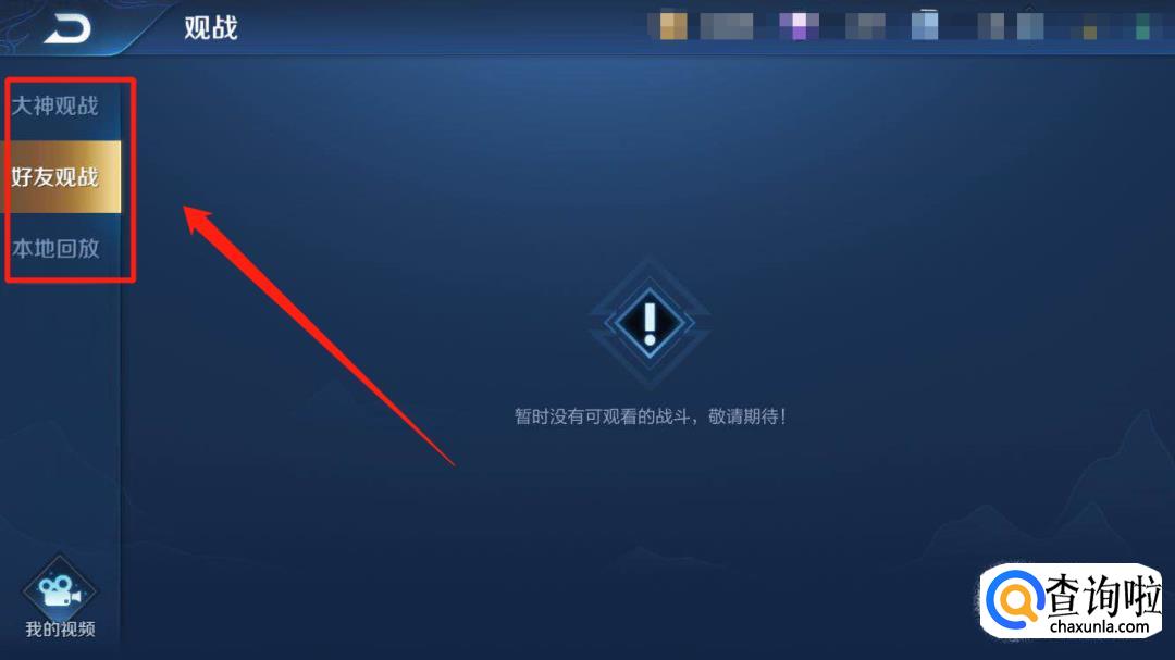 点开观战以后,会发现里面可以看到大神观战、好友观战、本地回放三个选项。