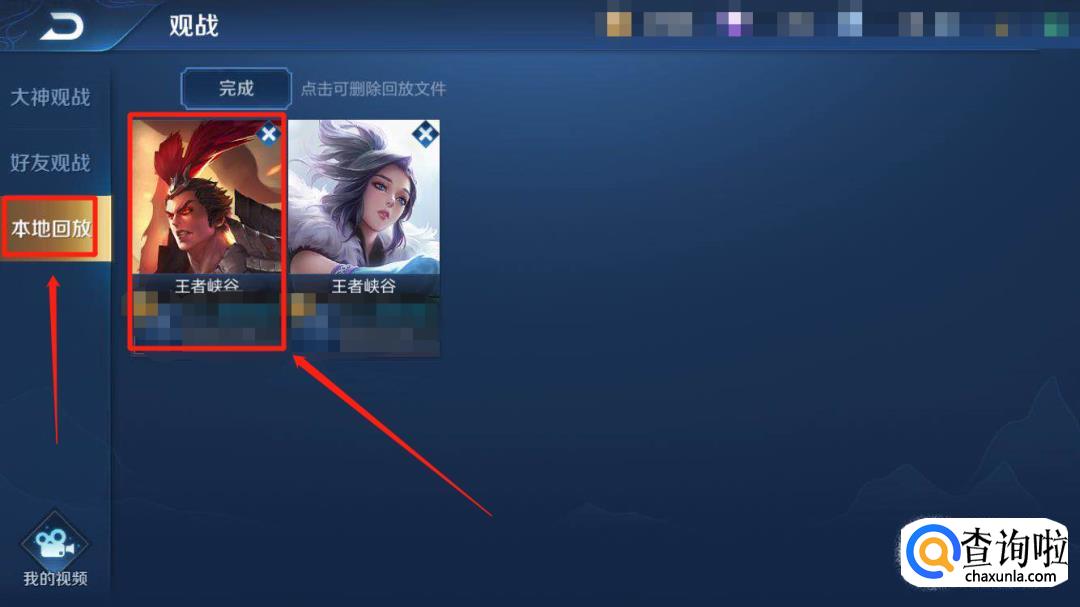 选择第三个本地回放,可以看到刚才保存的吕布视频就在其中。