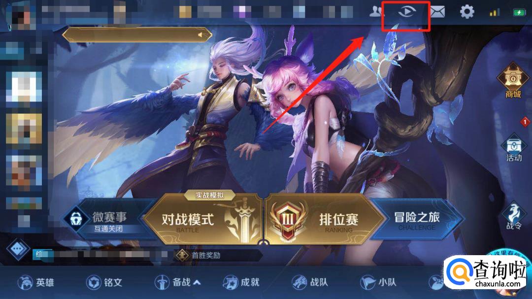 首先回到游戏主界面,找到观战按钮,如图所示。