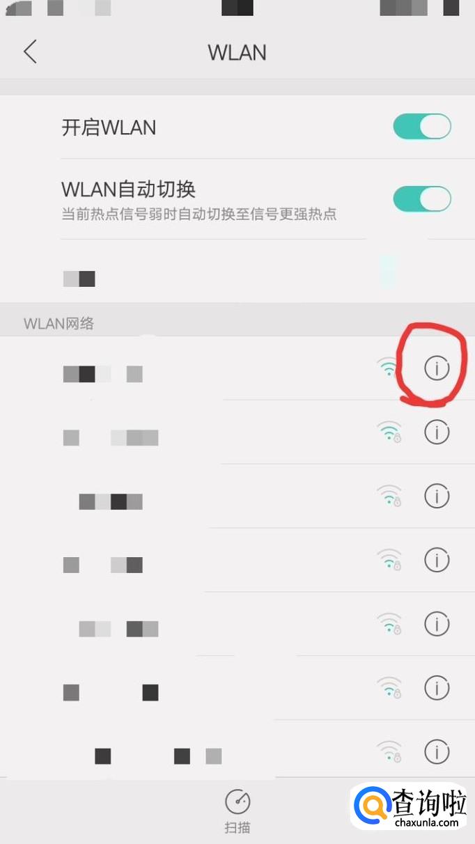 返回WiFi主页面,点击连接不上WiFi的详情按钮,如下图所示。