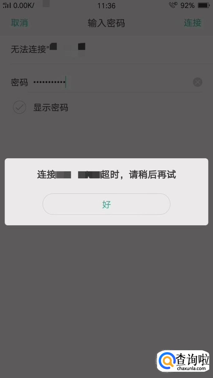 输入密码进行连接,但是会发现连接不上,如下图所示。