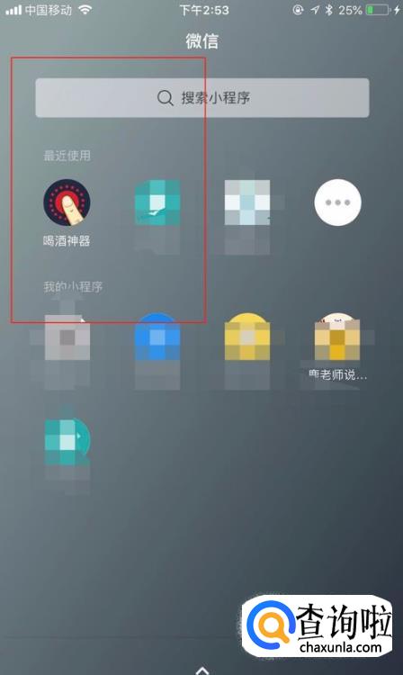 然后在自己的微信上搜索喝酒神器小程序并点击打开。