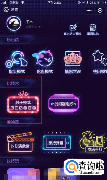 在喝酒神器小程序里找到骰子游戏模式点击打开。
