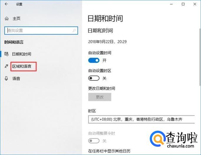 弹出的界面,我们点击区域和语言;