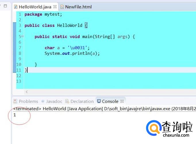 char型,存放字符类的数据,采用unicode编码,举个小例子,u0031对应的是1,如下图
