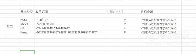 整型包括byte、short、int、long四种,其取值范围整理如下图