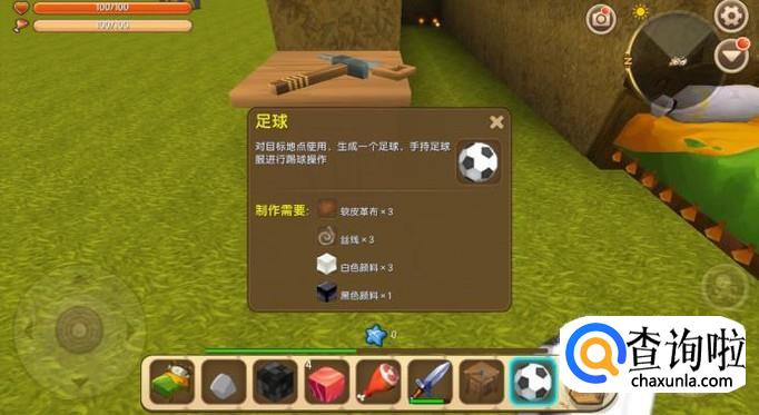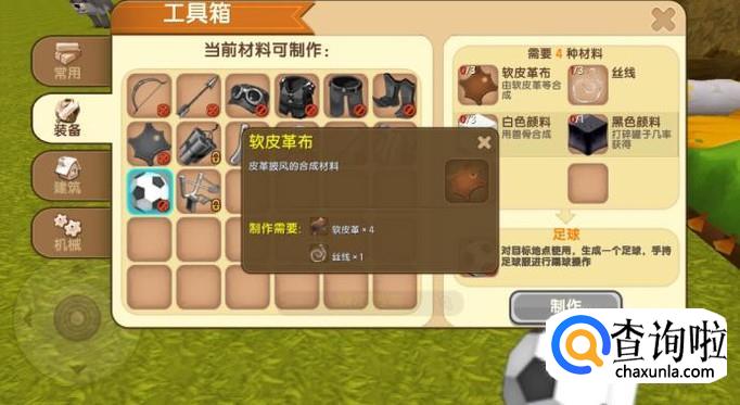 然后先用软皮革和丝线制作软皮革布,再用软皮革布和其他物品合成足球,如图所示。
