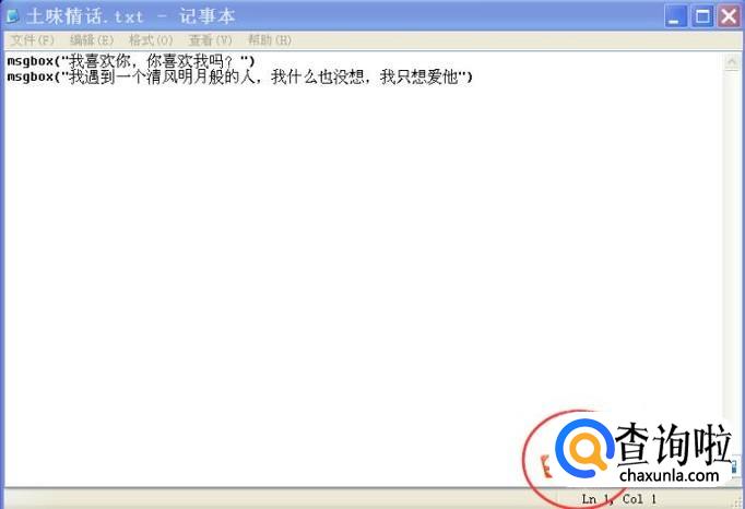双击打开,输入msgbox(" ________________________ "),横线上输入需要的内容。注意,在输入括号中的双引号时,一定要把搜狗输入法切换成英文模式再输入。