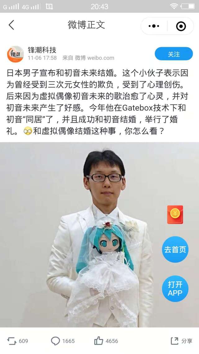 能够跟自己喜欢的初音未来结婚,对这位男子来说,也是一种安慰。