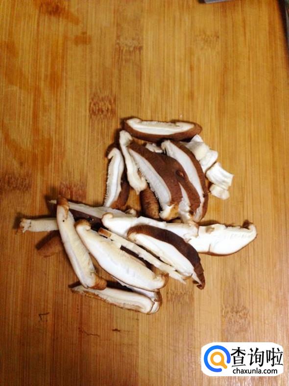 鲜香菇用清水洗净,然后切成薄片。