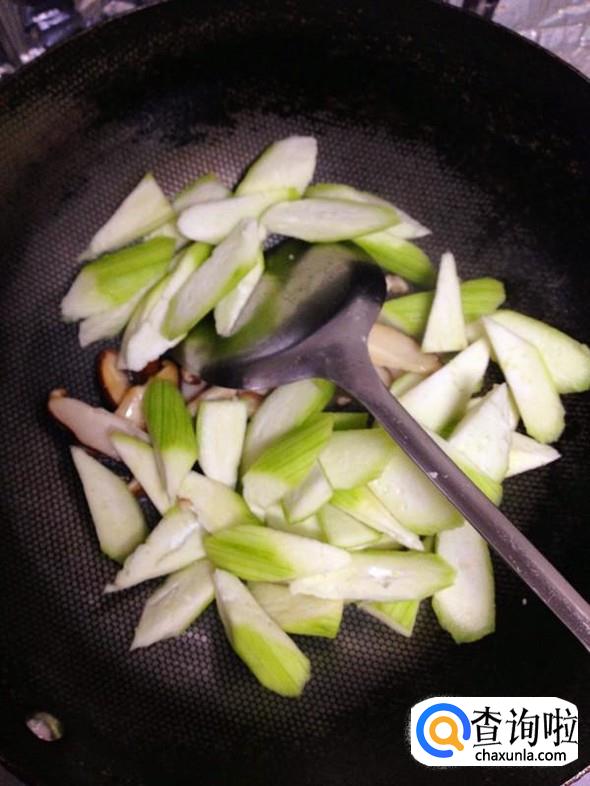 油锅烧热,把香菇片放入中火翻炒。