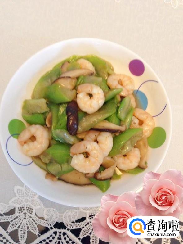 炒至虾仁变成淡淡的粉红色,就可以出锅装盘了。