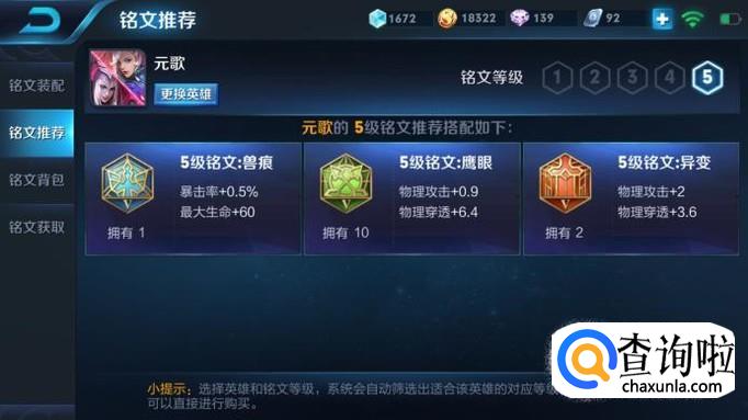 铭文推荐兽痕、鹰眼、变异。也可以根据自己对英雄的理解自行选择。