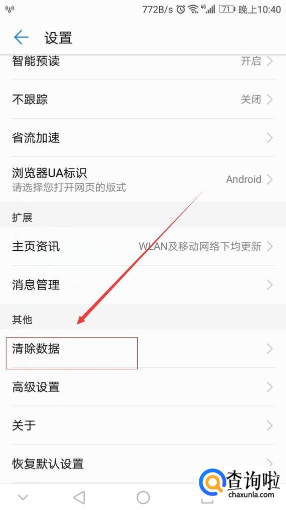 接着再出现的界面,我们往下拉,当看到“清理数据”的内容后,我们点击下,进行一些内容的清理。