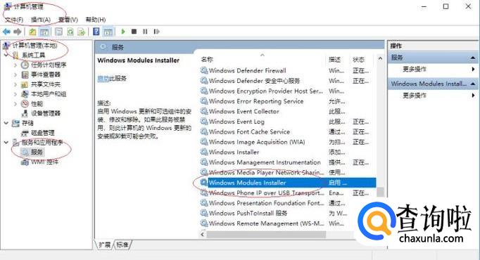 拖动右侧垂直滚动条,如图所示。鼠标双击"Windows Modules Installer"服务,用于打开此服务属性对话框。