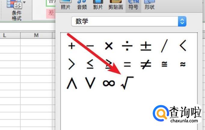 过滤后,就可以看到平方根的符号了,点击后就可以在单元格里插入了这个符号了。