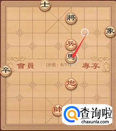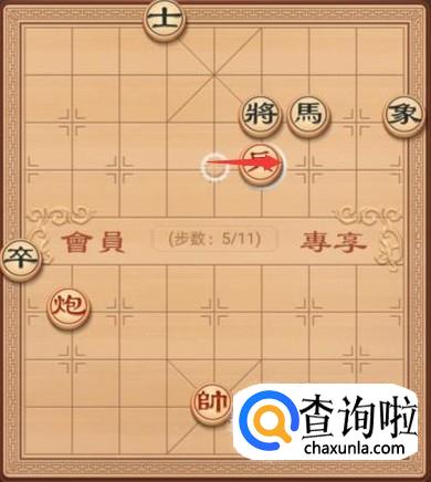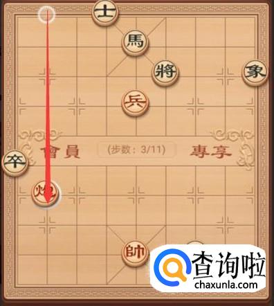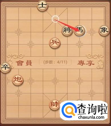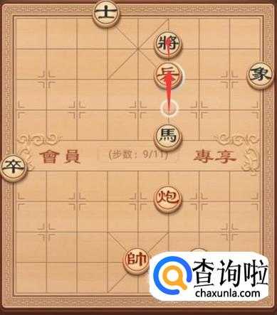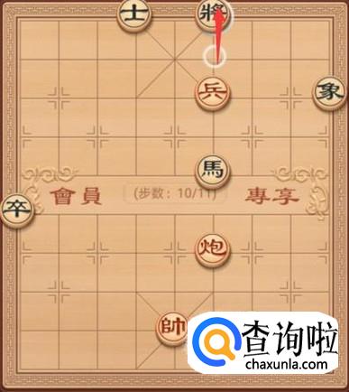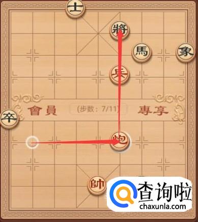 黑方这里就要防御红方的炮将军了,这里就是要将退走一步,如图所示。