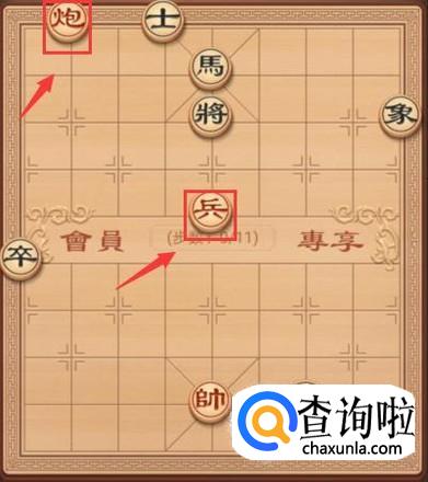 红方一个炮一个兵,怎么获得胜利呢?红方这里来走它的第一步,红方就是兵上走一步将军,如图所示。