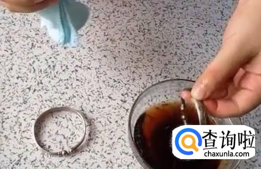 把氧化了的银饰品放入可乐中浸泡,一直泡到没有气泡出现,就可以拿出来清洗干净,这样就可以恢复原来的光泽。