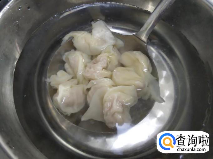 在馄饨煮至9成熟时,捞出,过冷水,备用。注意一定要过冷水。