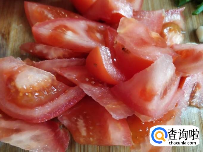 取两个西红柿,将西红柿清洗干净,切成小块,备用。