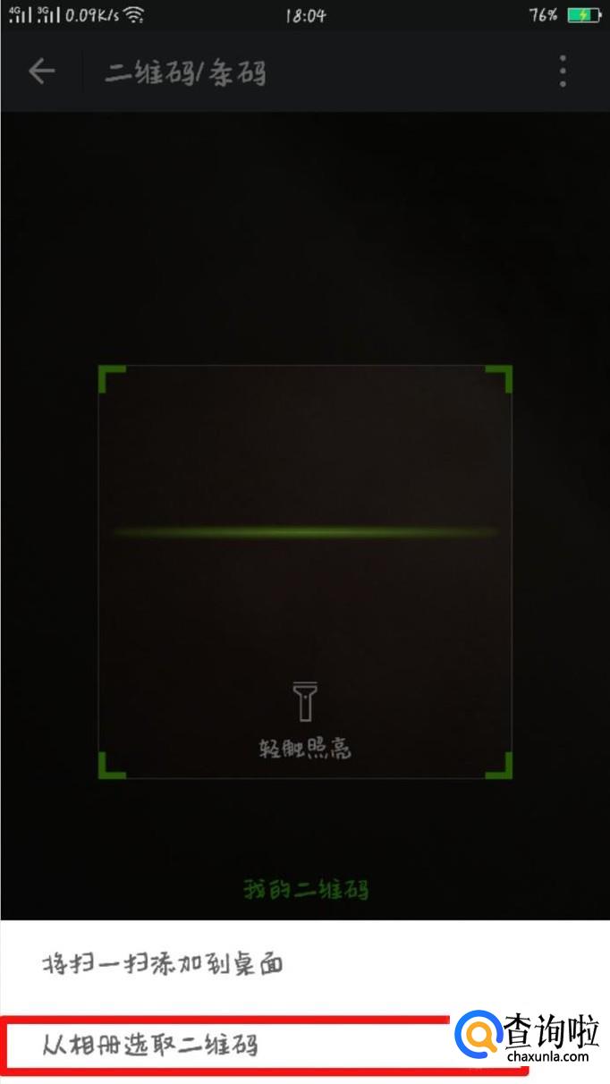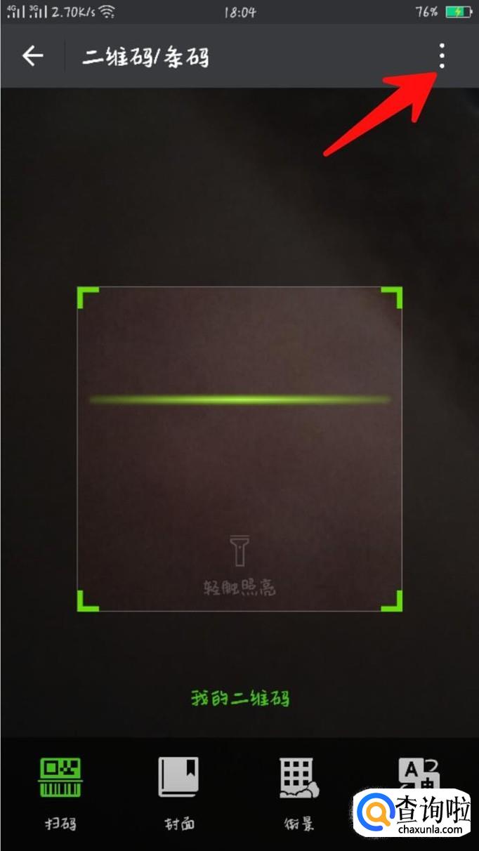 进入扫描界面时,点击右上角小编箭头所指,然后点击“从相册选取二维码”,选好二维码就可以扫描啦!