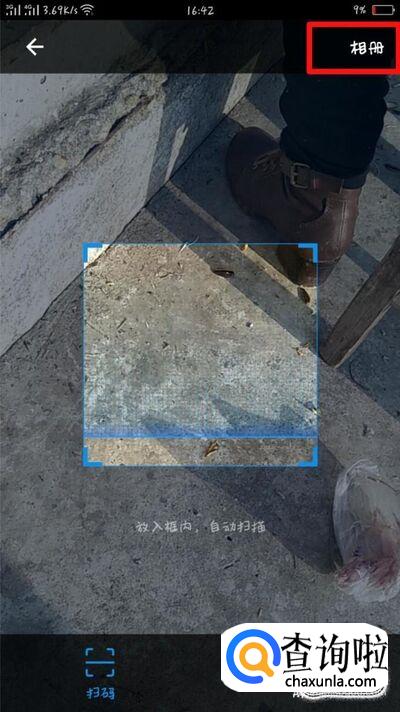进入扫描界面时,点击右上角“相册”来选择你要扫描的二维码吧!