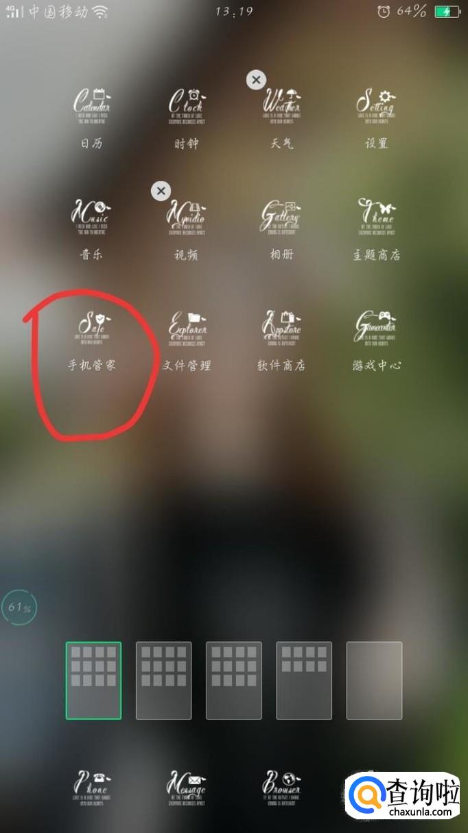 找到手机界面上的手机管家,点击打开手机管家。