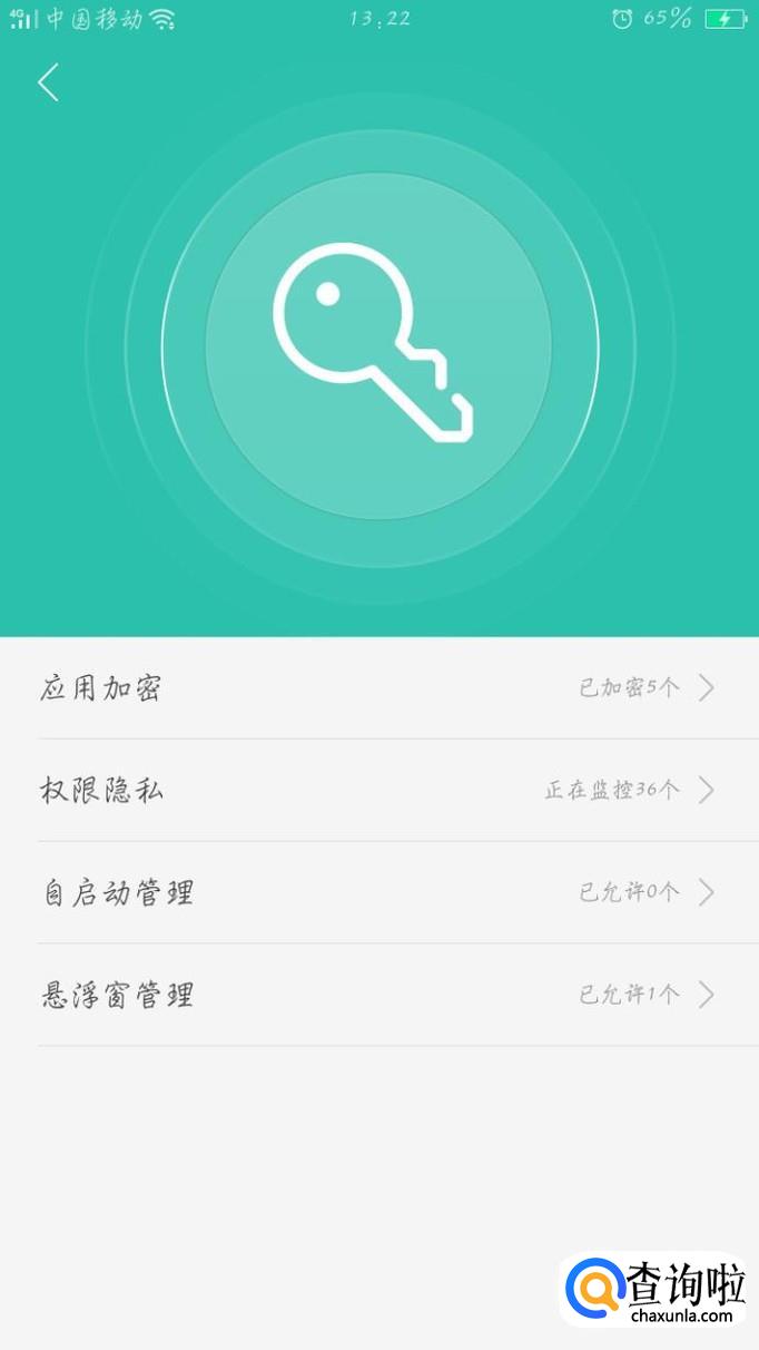 进入手机管家后,有一个权限隐私,点击权限隐私,进入并找到应用加密功能。