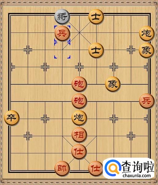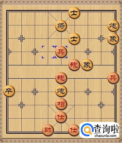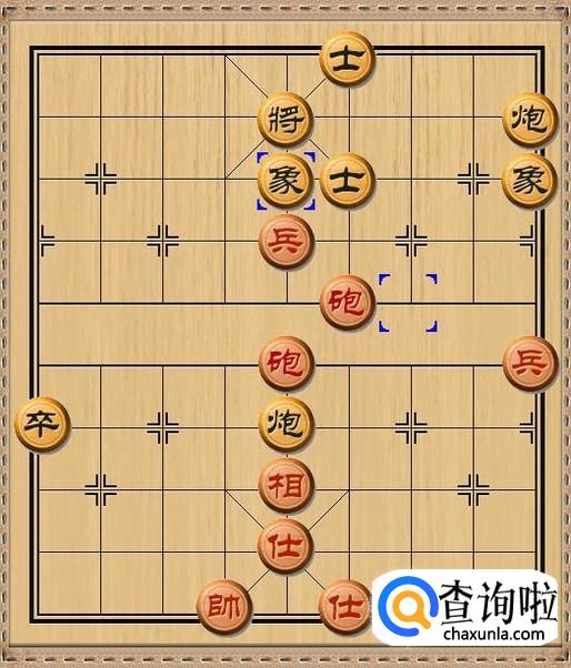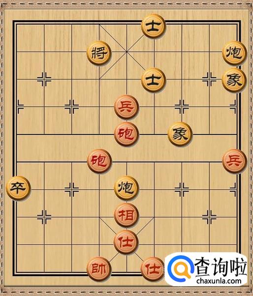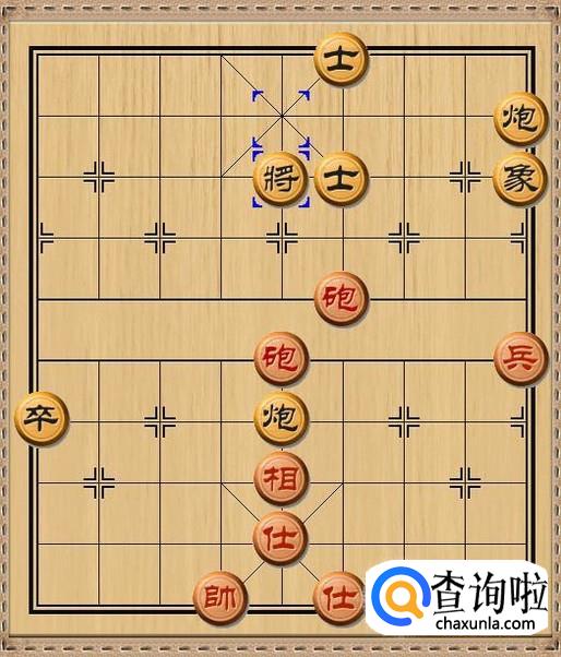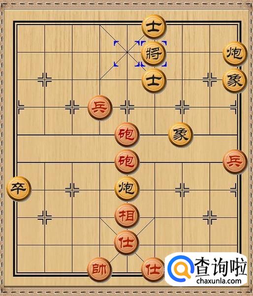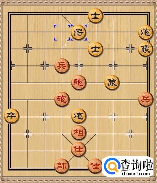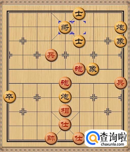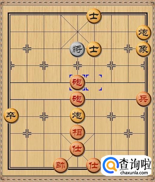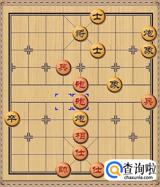 红方前炮平四,红方炮向右移动一步,利用黑方士作炮架,继续对黑方老将当头将军。如图所示。