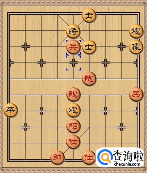 黑方老将对于红方过河兵的贸然进攻很是恼火,黑方将5进1,黑方老将往上走杀掉了红方过河兵。化解了红方的双将。如图所示。