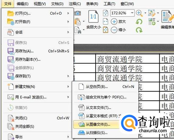 点击左上角的文件下的新建文档按钮,这里我们新建从图像文件新建PDF文件