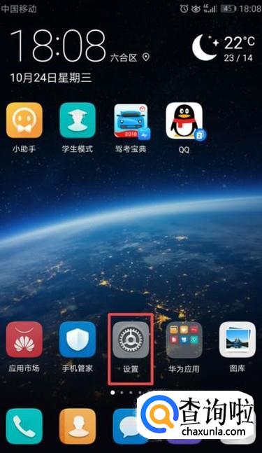 首先,我们打开我们的手机,然后我们点击设置,如图所示;