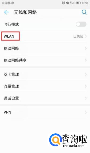 然后我们点击WLAN,如图所示;